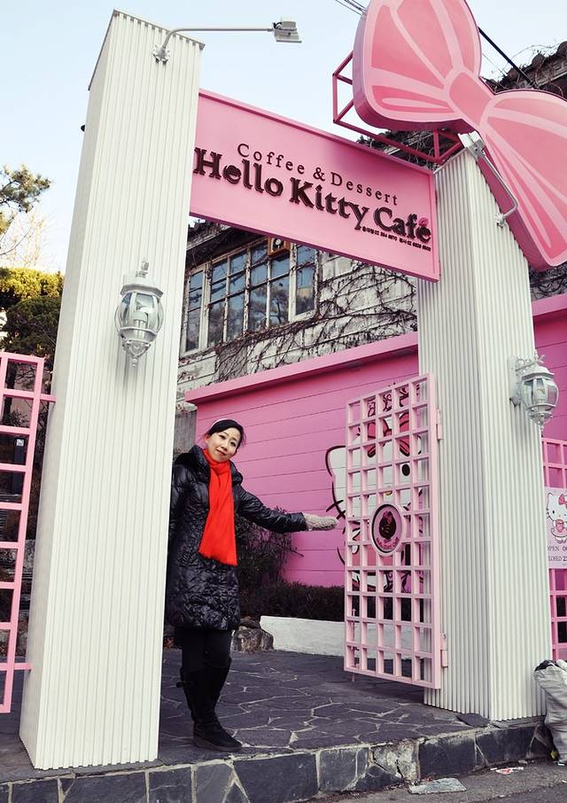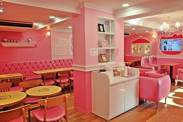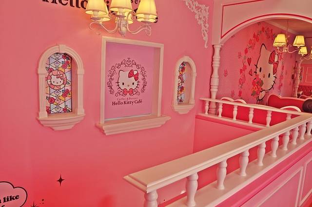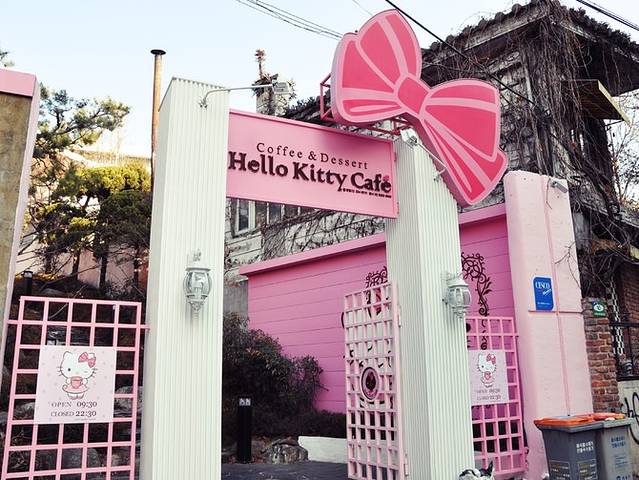 他家开的好早,早上7:30就营业了,兴冲冲地充进去开启摆拍模式。两层楼的粉色小洋楼太可爱了,上下都是咖啡间,还有hello kitty的房间和饰品店。庆幸去得比较早,完全没有游客,两层楼的粉色小屋随便拍照!