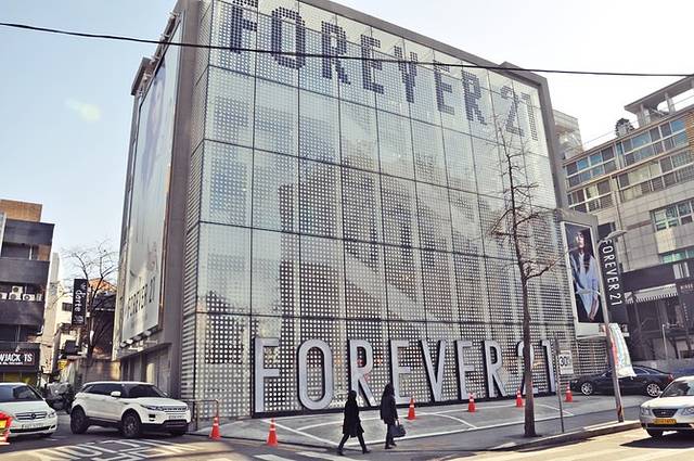 偶们继续往梨大地铁站的方向走,沿途还是各种咖啡店、小吃店和化妆品店。新村差不多位于梨大和弘大的中间,再走一段弘大到新村的距离就到梨大地铁站,看到美丽来,不过这个貌似是废弃的大楼。