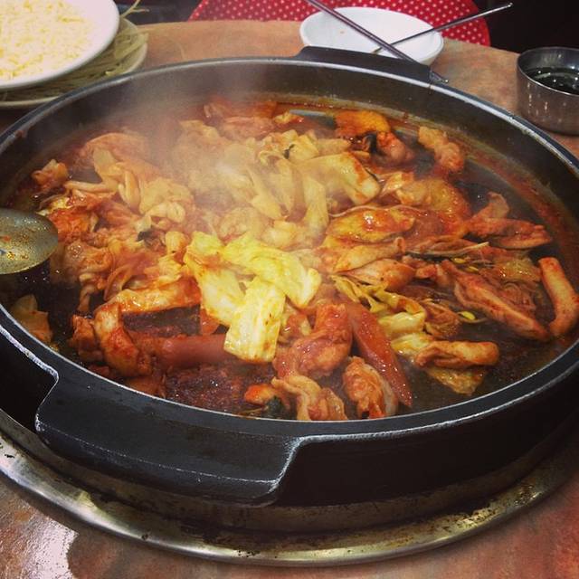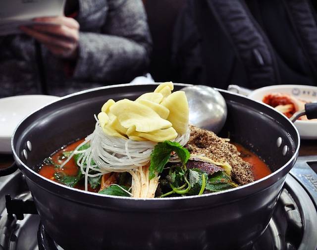 在寒冷的冬天热腾腾地煮着吃,嘴里充斥着甜辣酱浓烈的口感,还挺舒服的。送的小菜有常规的泡菜、豆腐干、胡萝卜、腌萝卜,豆腐干很美味~~总体信价比真的不高,不推荐。