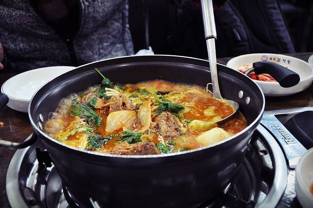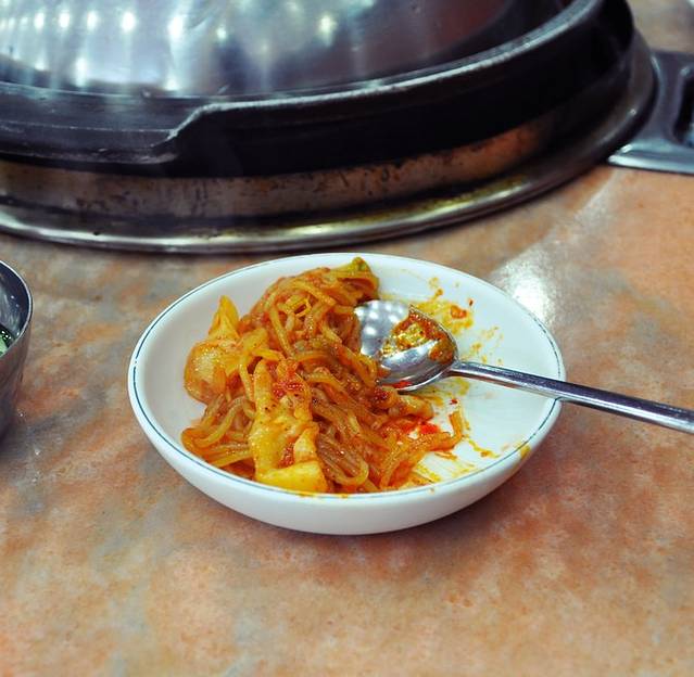 韩国好多一大锅煮和炒的东东,这个也是,就是大脊骨、土豆、紫苏、粉丝、小面片、金针菇和韩式甜辣酱一起煮,是我们在韩国吃的最贵的一顿。点了两人份,24000韩元,够吃但量并不多,尤其是土豆、紫苏这么廉价的东东也只放一点点,店家真是有些小气。
