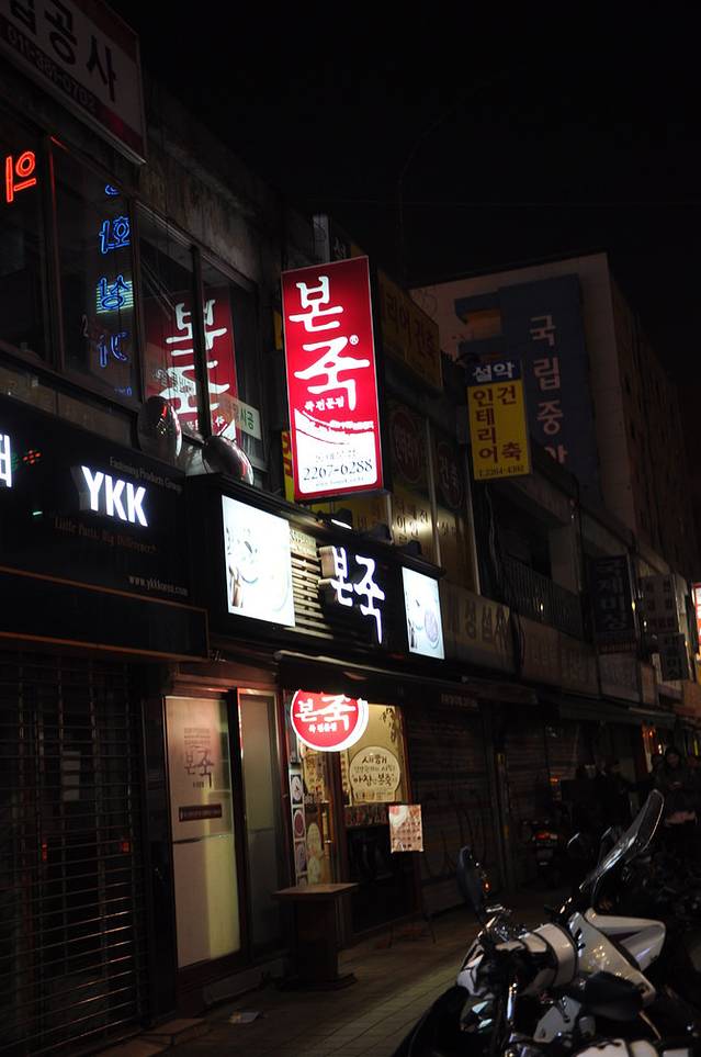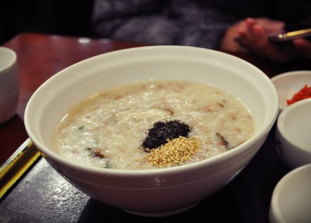 遍布首尔的喝粥的店,店面不大,海鲜粥、泡菜粥、蘑菇粥、蔬菜粥、南瓜粥等等各式各样,都是现做,价格8000到10000韩元不等,还会送牛肉丝、泡菜、腌萝卜等小菜。