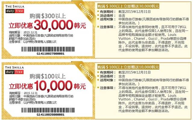 新罗、乐天官网上的优惠礼包。