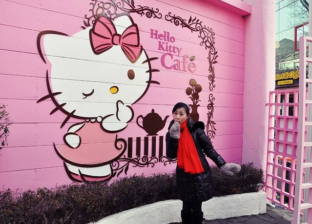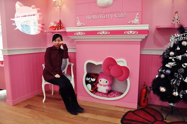 这家hello kitty café比较隐蔽,照着地图找可以找见。