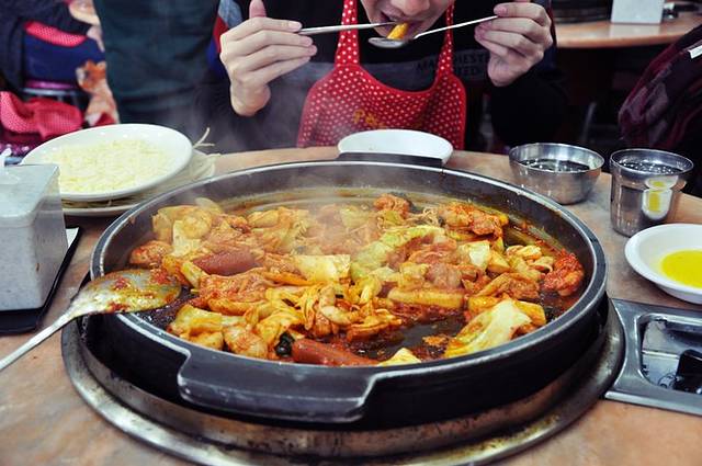 16.韩国当地的部队锅不像在国内吃到的是一大锅子什么都有的端上来,底料只有肉肠和酱汁,其他都需要单点;