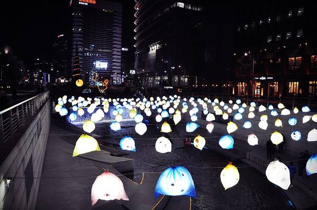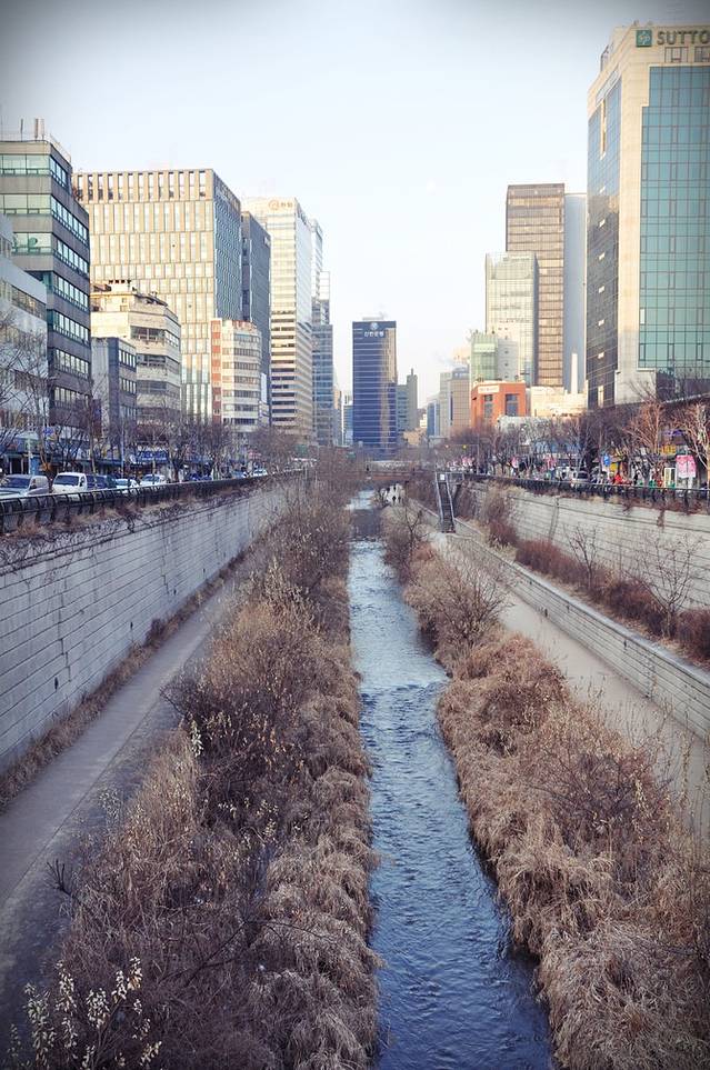 清溪川广场是清溪川的源头,沿着流淌出去的清溪川,自西至东穿过首尔市中心,是钟路区和中区之间流淌的古老河道,全长约为5.8公里。