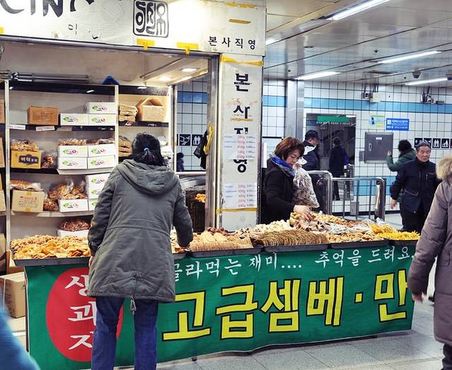 因为下午差不多2:30就要赶去机场,留给偶们活动的时间不多了。我们打算先去易买得(EMART)买点零食之类的手信,因为那的东西据说是最便宜的,然后去新沙洞林荫道。