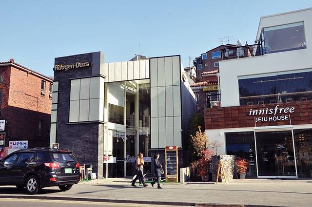 街道的两旁聚集了个性十足的时装店和精巧独特的文具店,还有许多欧式露天咖啡厅和装潢别致的餐馆。与明洞、东大门相比,这里少了一份喧哗和浮躁,多了一份从容与优雅。