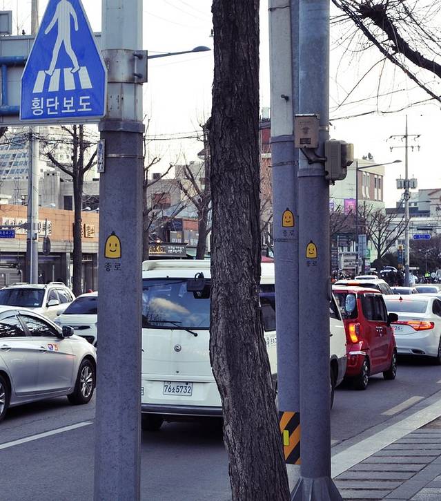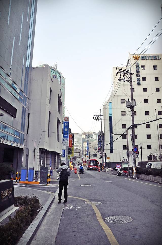 沿着马路走,实在不喜欢上午的首尔,门庭冷落,没有一处收留俺们的。