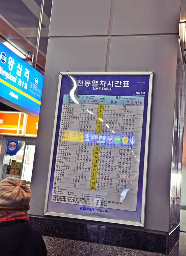 地铁出发去新沙洞,首尔的地铁都标有时刻表,方便大家查询每个列车到达的准确时间。