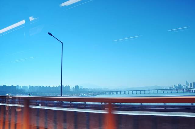 江南区在汉江的另一边,地铁开过汉江,蓝天白云,温暖的阳光洒下来,让人感觉日子愈发的美好。