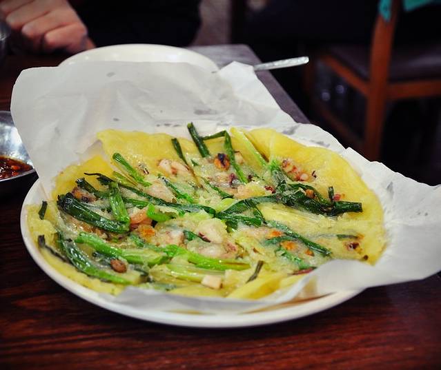 我们还单点了海鲜饼10000韩元,油大自然很香,没有泡菜饼好吃。