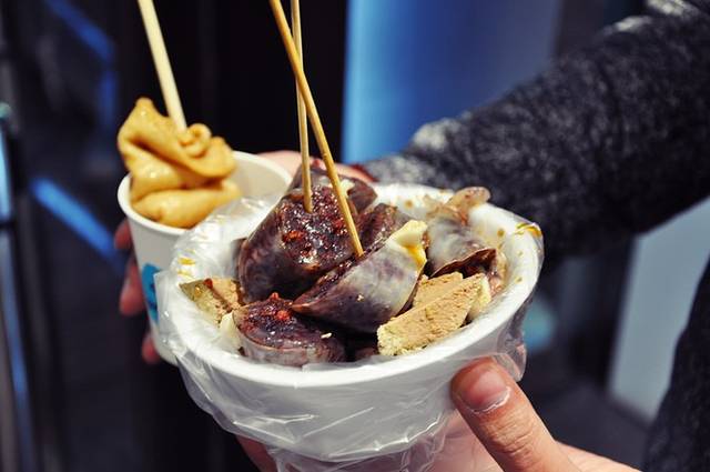 出东大门地铁口买了豆皮和米肠补充能量,好好吃!