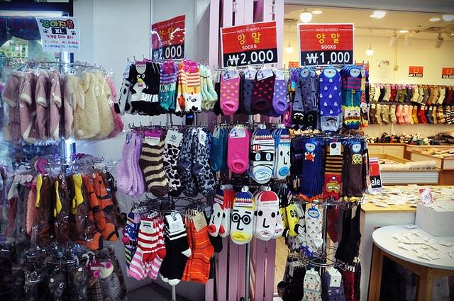 韩国服饰:DOOTA和美丽来各买了一件毛衣,均价150RMB;美丽来买了韩式尼大衣外套300RMB,地铁小店各种短袜若干,6RMB到17RMB;打底裤厚薄若干,28RMB到57RMB。