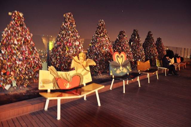 13.去N首尔塔的时间务必横跨白天到晚上,最好天黑前上去,因为同心锁处晚上没有灯光,必须借助自然光拍照,而观光层的夜景又值得晚上观赏;