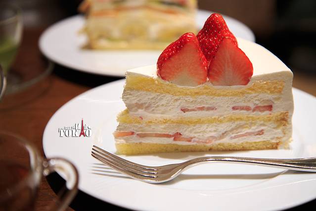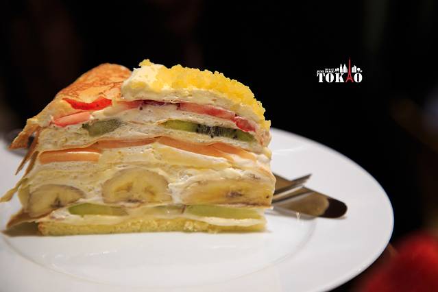 京京点了个水果千层塔。水果很新鲜,但是同时也盖掉了奶油的味道