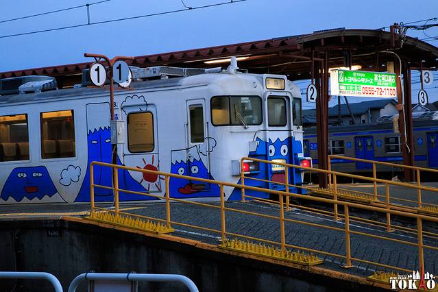 正在骏爷在担心公交车班车的关系会赶不上5点多的客车的时候。酒店前台很热情地说时间太晚了,要送我们去车站。骏爷真是太感动了,不得不再称赞下日本的服务态度,甩国内好几条第五大道啊~~到达河口湖站,京京去买车票。骏爷为大家拍下富士急行到河口湖的火车,可爱吧~嘿嘿~