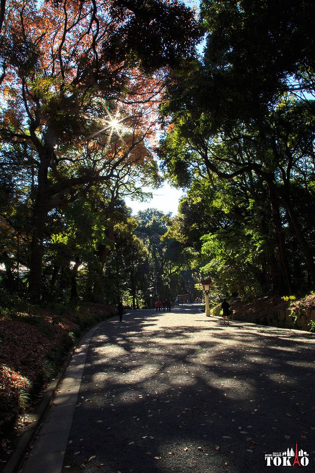 明治神宫的步道两边种满各种树木,在冬天的暖阳里绿的让人身心愉悦。这自然要得益于明治神宫建成时规划建造的人工树林。正应了那句话:前人栽树后人乘凉。