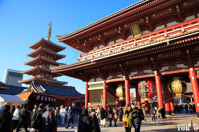 在哆啦A梦博物馆磨磨蹭蹭,后来又搭错车,所以酒店check in、到达浅草寺已经将近三点了,可能是冬天的缘故,三点的东京居然是一副黄昏的景象。而此时的浅草寺也没有想象中的人头攒动,摩肩擦踵。