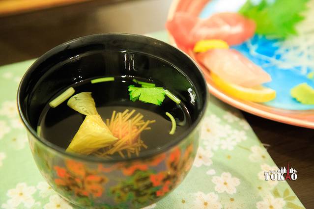 日本人把汤称作吸物。但汤里某种植物的味道让胃不舒服的骏爷闻着都难受,所以这汤最后也没怎么喝。