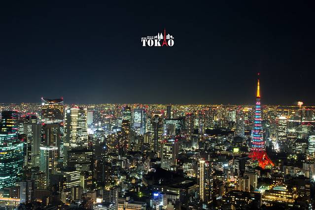 在六本木hiis大厦看一次城市灯海中的东京塔和天空树
