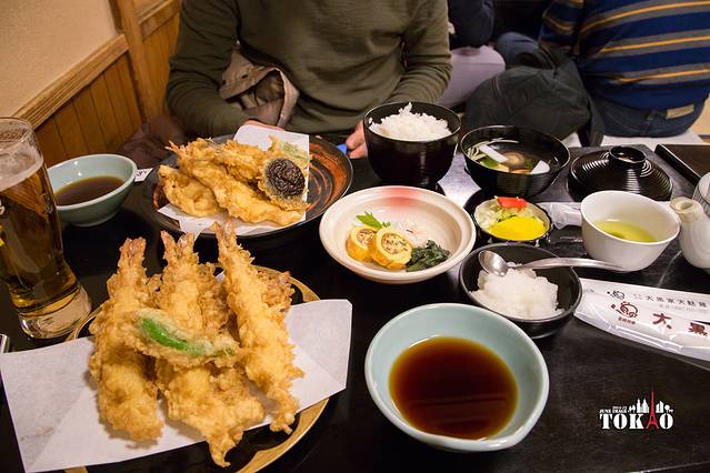 坐到二楼的榻榻米房,体验下日式的天妇罗,喝一杯地道的生啤,完全日剧的赶脚啊。只是走了一天有点汗臭的脚丫子让骏爷好生尴尬,囧~~~