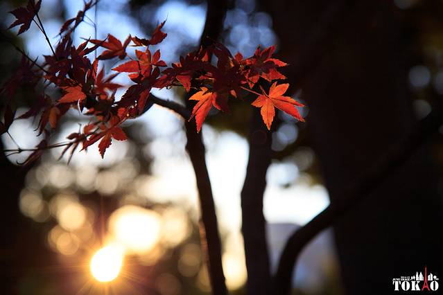 回到上野公园,夕阳透过树荫将红叶映照得分外火红