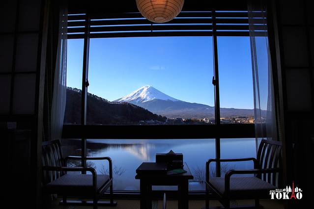 此时已经是夕阳西下的精致,而富士山有些背光。