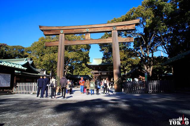 地铁坐到“明治神宫前”,出来就是明治神宫了。明治神宫是东京五个最主要的神社 之一,明治神宫免门票。但是里面的宝物殿和神宫御苑是要门票的,各是500日元,儿童200日元。