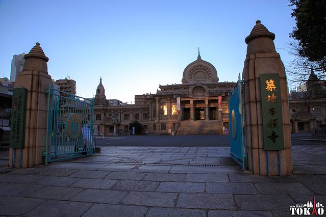 今天是日本的工作日,京京也要上班。所以两个人决定在上班之前去筑地市场吃顿豪华的早餐。所以7点不到就起床,直奔地铁筑地站。一出来就能看到筑地本愿寺。→以下来自维基百科。筑地本愿寺(つきじほんがんじ)是位在日本东京都中央区的净土真宗本愿寺派寺院。本尊阿弥陀如来、开基(创立者)为准如。东京都内代表的寺院之一,京都市西本愿寺之别院。正式名称净土真宗本愿寺派 本愿寺筑地别院,俗称筑地本愿寺较有名。关东大震灾后伽蓝烧失,目前所见的古代印度様式(天竺様式)伽蓝是由东京帝国大学工学部教授・伊东忠太设计,1934年落成。