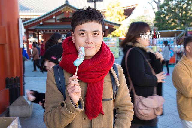 因为酒店就订在浅草寺边上,所以决定先来浅草寺庙吃点东西。巧克力香蕉在关西的时候就想吃了,到东京怎么能错过呢?