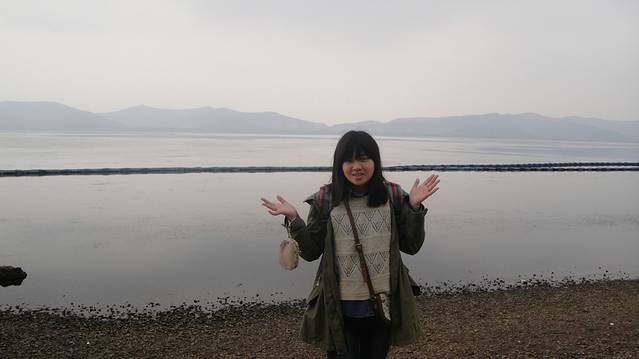 害我和最大的铜钱没能合照,只能在湖边摆造型