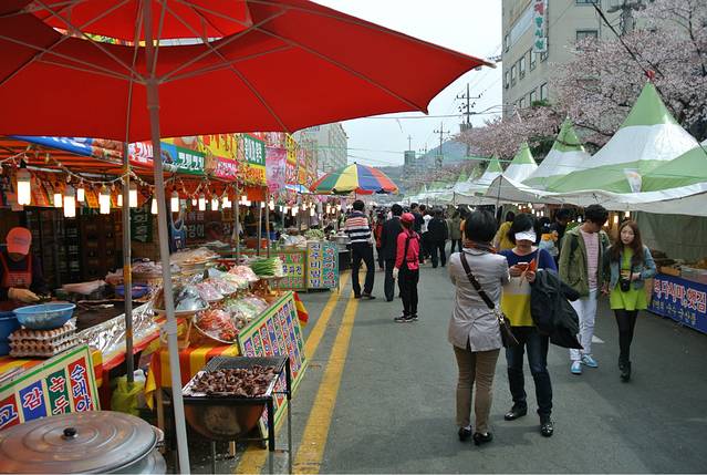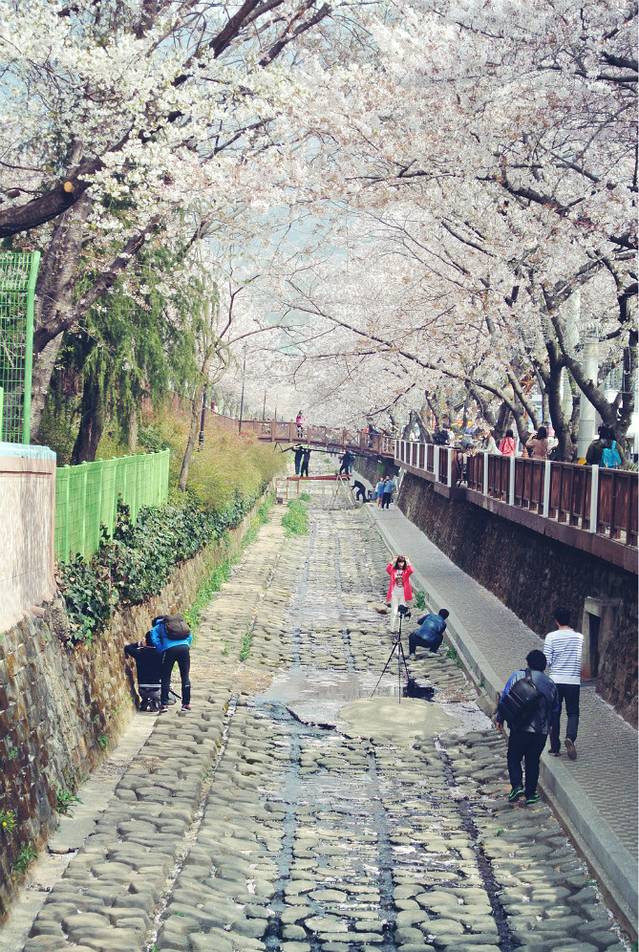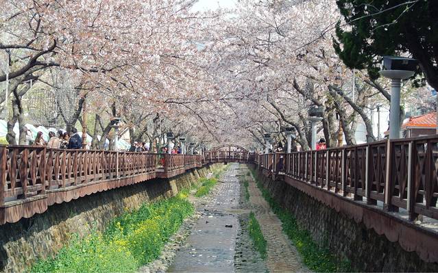这边的樱花又不一样的美感,樱花树也长得很大很茂盛,军舰樱花大海,还有李舜臣的纪念碑等等,了解韩国海军文化的好地方。