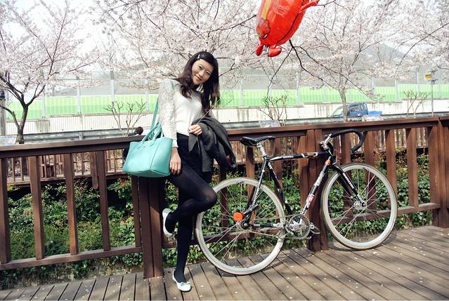 【第一站余佐川】好可爱的小雕塑。到镇海火车站左转,然后再右转穿过一个地下通道就到了又是因为一部韩剧而闻名的余佐川。被樱花笼罩的小溪真是美的让人窒息。恢复神智之后开始狂臭美,狂拍照。