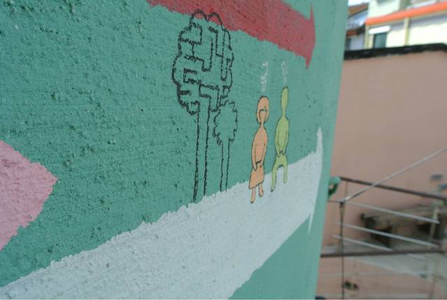 下车后有路标指示滴,右转进入一个充满了壁画的巷子就是啦。当时我和朋友特别2,走了好久,都没有找到买地图的ART SHOP,我一向是能自己找就不问人的类型,转两圈之后都快累死准备放弃打道回府的时候,我去买水的时候问了一大妈,她给我指了一下,说就在一个做头发的店旁边~ 然后我们才找到。结果回家看照片的时候看到了第一次走的时候照的这个照片。。。