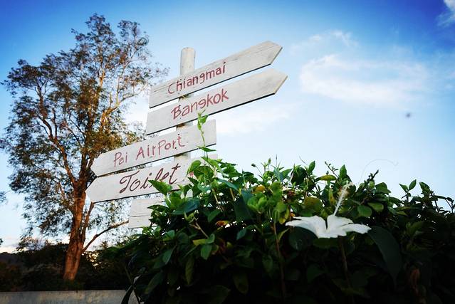 拜县LZ只住了一晚,在Agoda订的是The Heart of Pai Resort,一晚120元人民币。选择这家是因为它倒过来的房子非常有特色,而且环境很好,价格也便宜,重点是非常容易找,因为mini van去汽车中心的时候就必定经过Heart of Pai,所以下车以后,我们在Aya租了两台小绵羊,沿路返回就能找到酒店,根本不需要什么地图,一路过来就能知道路怎么走。它的位置大概就是在进入了拜县,往县中心走的必进之路上。
