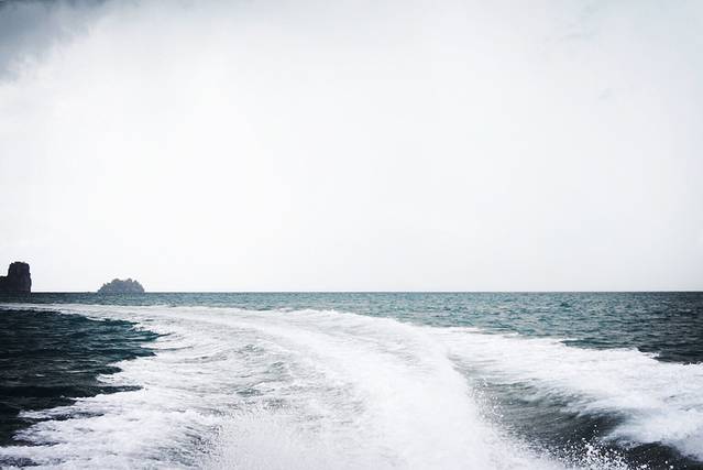 一早7点就在酒店门口等,因为双条车要接好多个酒店的人,所以就稍微等了15分钟,接好人以后就送到码头坐快艇。这里要提醒一下筒子们,快艇和长艇是有区别的,Speed Boat是快艇,Long Boat就是那种比较慢的,在预定参团的时候一定要说清楚是哪一种船。Speed Boat的船内环境不错,都是很新的快艇,没有那种豪华游轮那么漂亮,但是非常干净舒适,一艘快艇大概可以坐20来个人,喜欢看风景的可以去船头坐着,就是风大了些,不过看景色是很漂亮的。