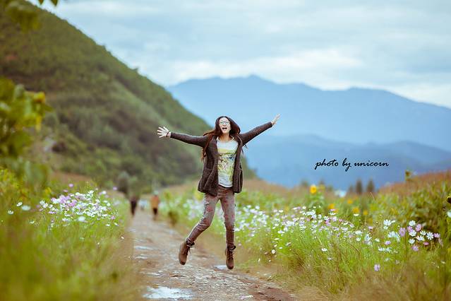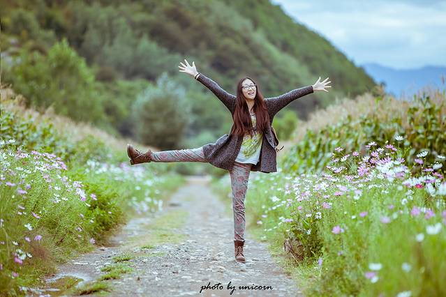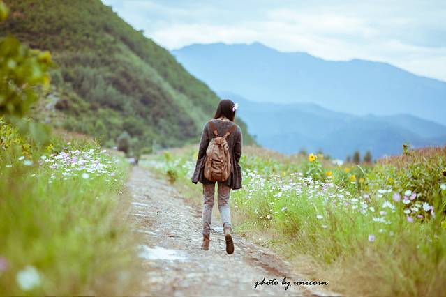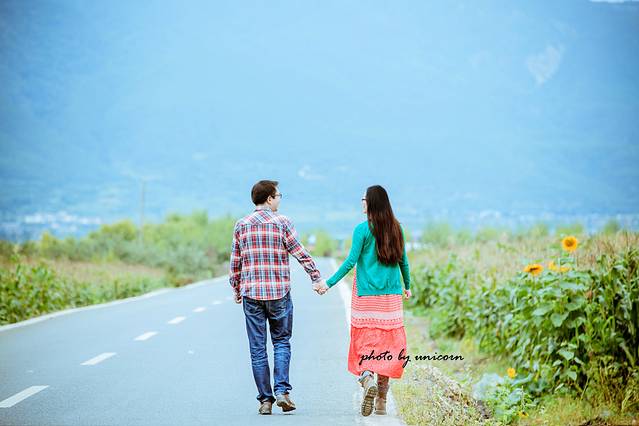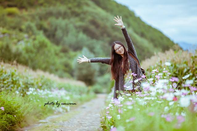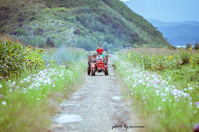 自助游玩的乐趣就是想走就走,想停就停,一点也不受限制,哈哈,我们走进一个很少人去的小径,两面环山,两面田野,我爱死这里了~