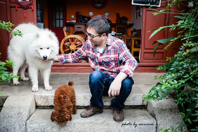 大叔和我一样都是超有爱心的人,两只狗狗会互相吃醋呢
