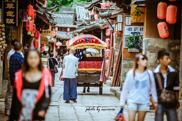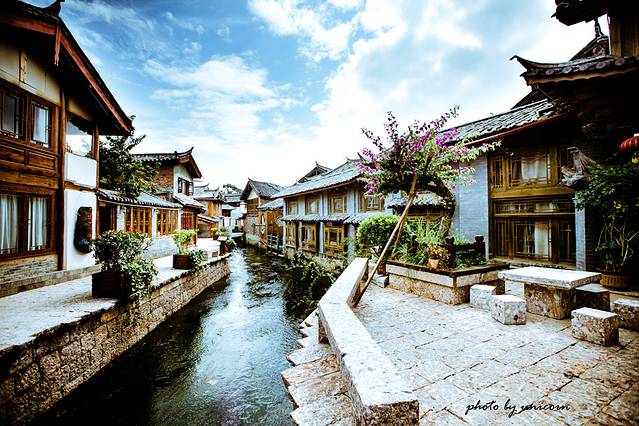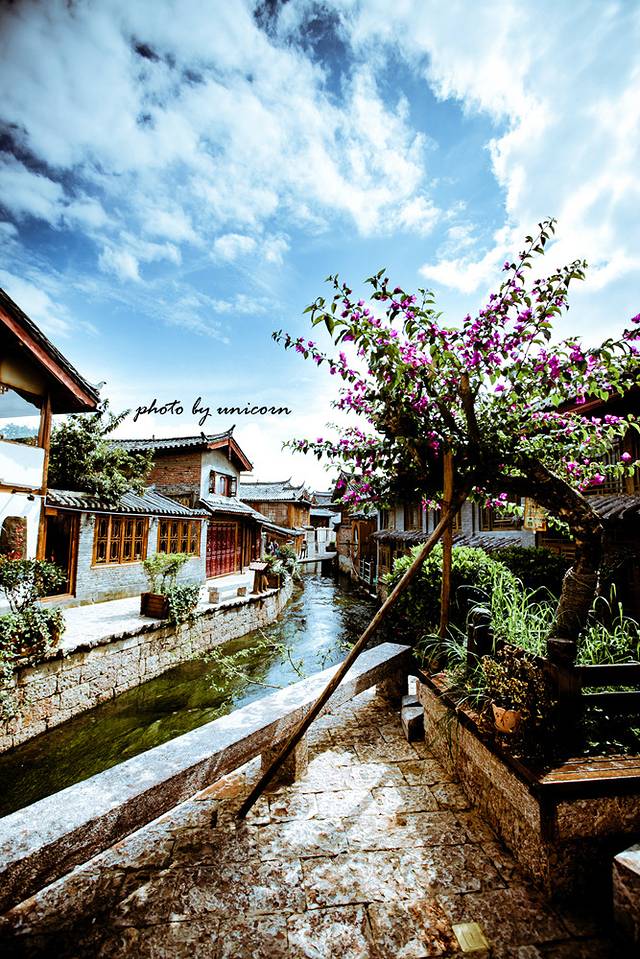 束河古镇位于玉龙雪山南麓,距离丽江古城四公里左右。现在虽已回到家中,看着小阳台自己养的小花小草,时而让我不由自主地想起了束河,如果把丽江古城比作大家闺秀,那么束河古城就是娴静的小家碧玉了,她有一种独特的韵味令人十分陶醉就像听到远方的呼唤,让你飞越千山和万水来到这清清幽幽、小桥流水不是江南胜似江南、八月天依然皑皑白雪玉龙雪山下一小村镇。在这里你可以慵懒地坐在小溪边遮阳伞下,听着潺潺流水声,品一壶好茶或叹一杯沁人心脾的啤酒,放松你的疲惫的身体、放松你忧郁的心情