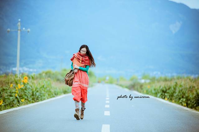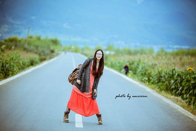 今天开始继续泸沽湖第三天环湖,首先上一段马路自拍,和大叔的跳舞,这条大路上很少有车辆经过,我们停下来,就在路上玩了1个小时的自拍,三脚架的走起~~恰 恰 恰~~~