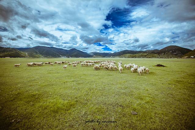 在拍这一张羊群的时候,我希望是有一张广角,几张特写,突然来一对小夫妻,那女子呼喊着:"我好喜欢这里啊,老公,看,好多好多羊儿啊~~",然后面朝羊群呼啸而去,把所有的羊儿都赶跑了,我气死了,只抓住了一个角度,因为我再凑近,羊儿就越跑,那个女人,你不能小点声吗?
