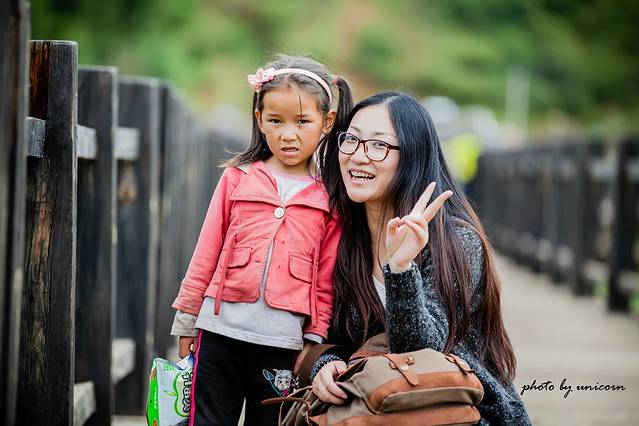 这个小女孩子,很是有耐心,跟随我从桥这头走到那头,目地是买她的苹果甘,买了后拉她来合个影,一脸无耐的表情,呵呵~