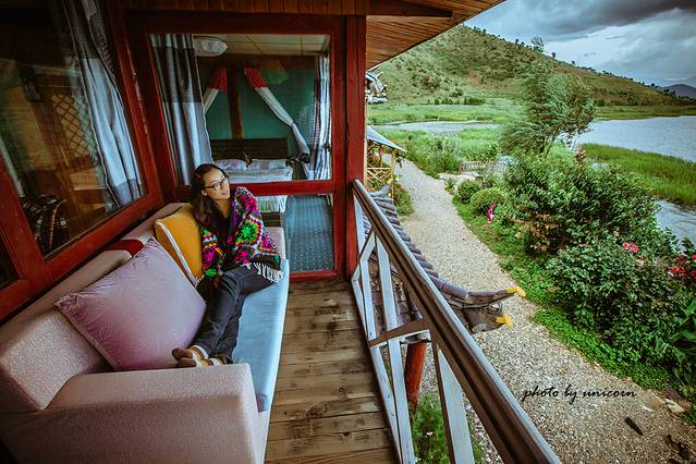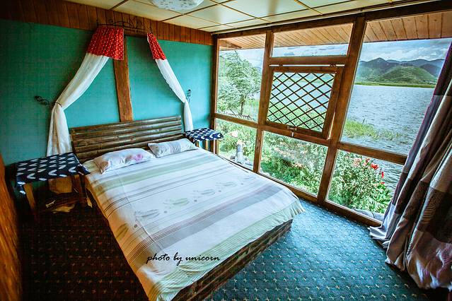 第一印象感受到后,我们直接前往预订好的客栈,这里的客栈老板都很不错,全部提供接送服务,我选择的是一家在洛洼半岛的名字叫传说驿站,因为洛洼半岛不属于另几个比较热闹的小岛,我和大叔还是喜欢相对安静舒适一些的环境,不想住的地方太商业化,所以选择了这一家,老板不错,派人在我们指定的下车位置接送,给我们做介绍,提供免费地图,所以当然很喜欢这一家了,最重要的是在这间套房里,我们可以看到草海~~