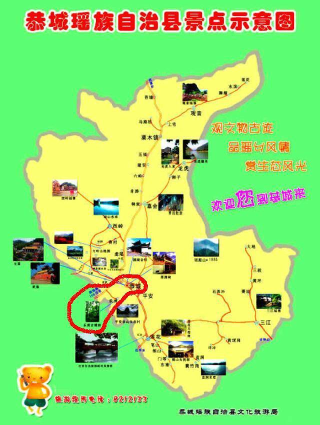 中国古村落——乐湾村,位于桂林市恭城镇城区南部4公里处。拥有上百年古建筑群和古巷子,加上清澈的茶江及江边原始森林般的百年古樟林,风景十分迷人。春天桃花李花漫山遍野,夏天,秋天各种水果丰收美不胜收,百年古樟林则四季景色宜人!