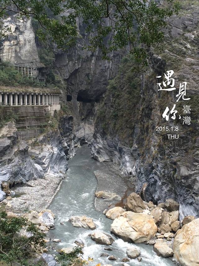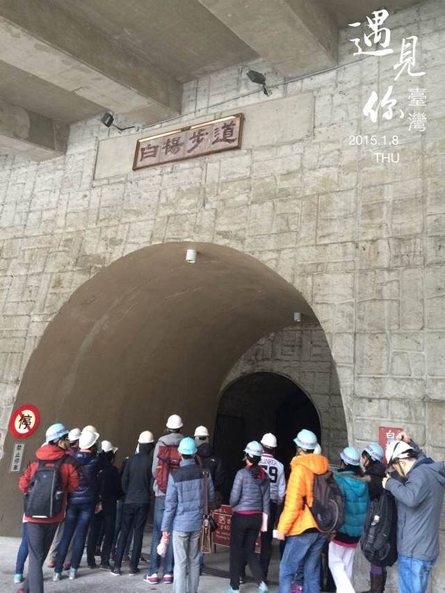 第六站,白杨步道。我们和其他台湾自由行包车的人一起跟着导游进入白杨步道,这时手电筒开始起作用了。我们依旧带着安全帽,跟着导游走走停停,边听着介绍,边看着风景,感受着太鲁阁独特的美…