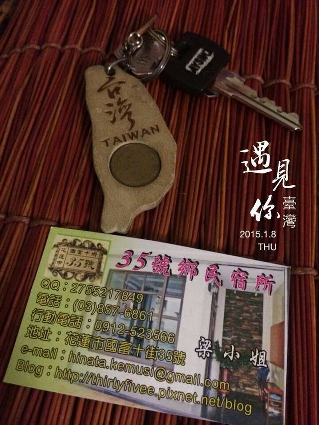 我们订的民宿是35号乡民宿所,在各大网站评价甚高,这次我们一样受到贴心的招待。当得知我们走错地方后,民宿主人立马开车来接我们。到了民宿后,叔叔阿姨都很抢着帮我们提行李,明明行李就很重,真的辛苦他们了!放下行李后,阿姨告诉我们说他们一直在等我们来,还说他们曾经等过一位客人直到凌晨一点……阿姨说这是因为他们无法从AGODA那里得到客人的信息,连想发邮件告诉客人如何到达民宿也没辙。其实,当时我有点疏忽了,应该一到台北就告诉他们到达花莲的时间,不让他们干等的。