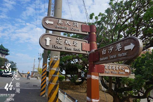 我们把电动车停放在小琉球旅客服务中心后,顺着指示走到了花瓶岩。花瓶岩是小琉球的第一标志性景点,因为顶上长满了植物,看起来像插着花草的花瓶而得名。这里也是浮潜胜地之一。