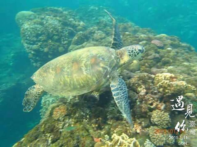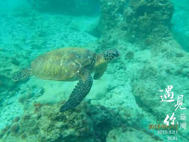 往下看,真的可以见到绿蠵龟在向大海游去耶。