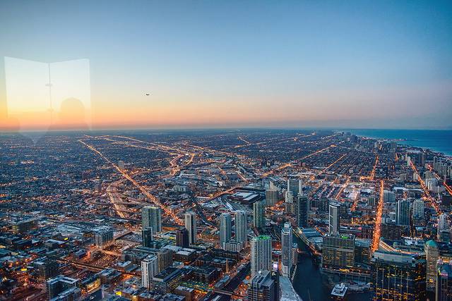到了顶楼,一出去就被曼哈顿河上的晚霞和灯光给满满射了一脸!