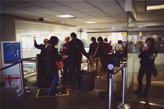 大概半个多小时把,总算全部过关,然后冬令营那边却叽叽喳喳的,原来那个好看的细腿萌妹子被带到小黑屋去了,听老师打电话好像是护照有什么问题还是什么,哎~果然我是看好谁谁就不走运。。sorry啦~